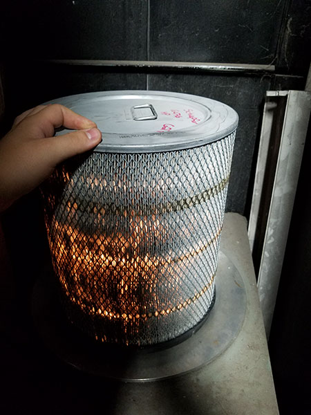 After the filter has be thoroughly dried, the filter is visually inspected again for any damage. Once it passes, it goes into a dark room where a light is shined through it to ensure no pleats have been torn and no seams have been broken. Any gaskets that have been removed will be repaired or replaced at this point and all damage (dents) will be fixed as well.