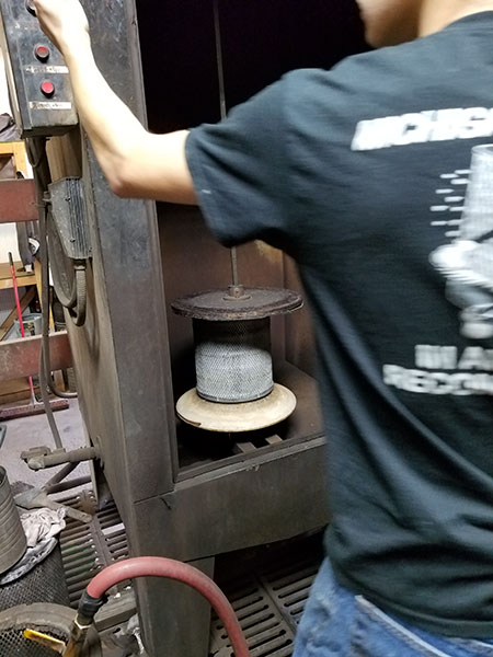 After the dry cleaning cycle is complete, the filter will be wet washed in our washer designed by the Wix Filter Corporation or our specially designed filter washing machine. This is a safe way to remove the remaining deep particulate that was not able to be removed through dry cleaning.